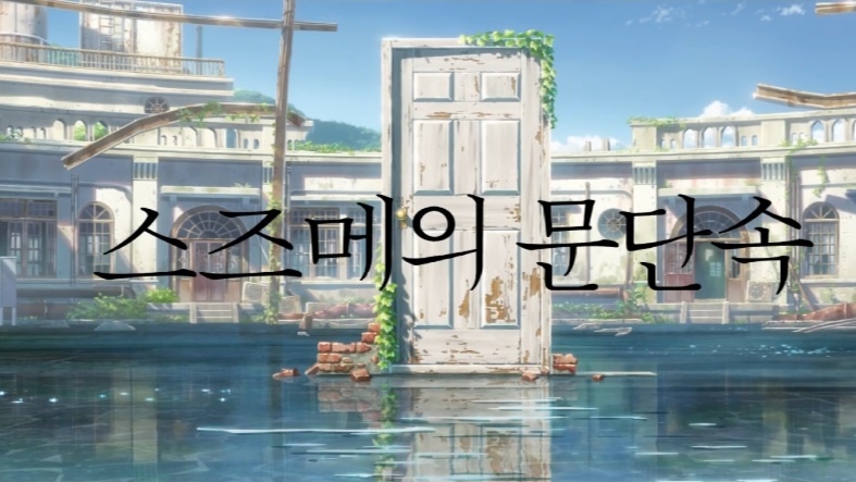 이모와 함께 살고 있는 스즈메는 학교 가는 길에 신비로운 모습의 무나카타 소타와 마주치고 소타는 스즈메에게 폐허의 위치를 물어봅니다. 스즈메는 학교를 가다가 멈추고 소타를 따라 폐허인 리조트 로비 안에 들어가게 되고 신비로운 문을 발견하고 문을 열게 됩니다.