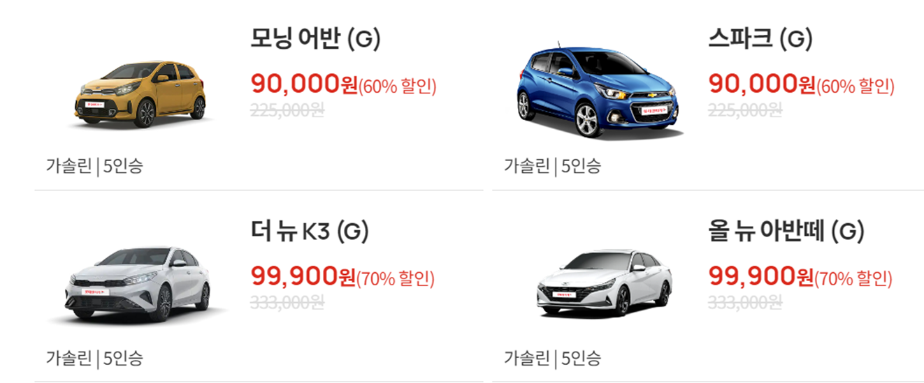 다양한 차량 종류를 보유하고 있으며 합리적인 가격으로 이용할 수 있는 장점이 있으나 이벤트 할인혜택이 적을 수 있습니다.